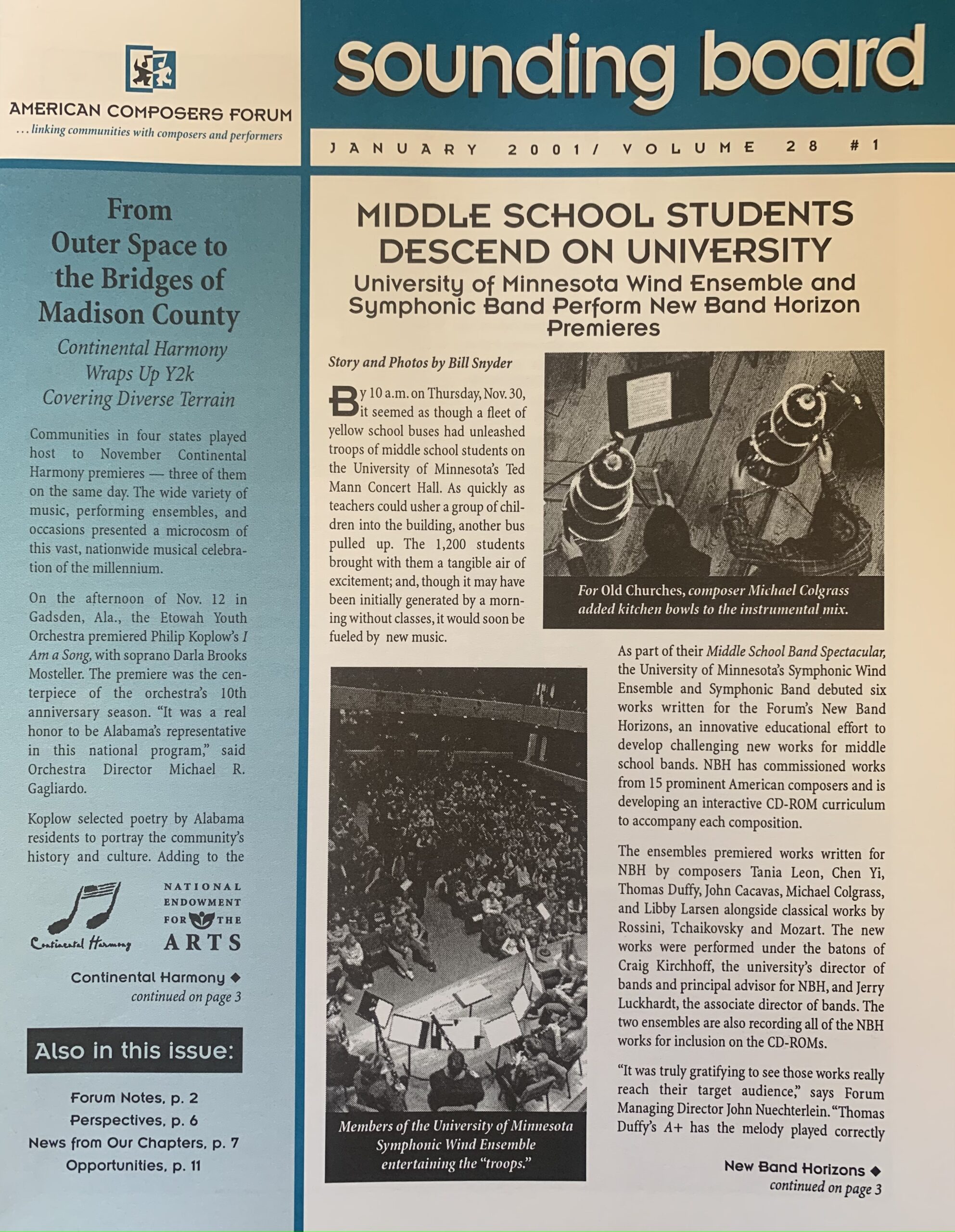 For the past 20 years the American Composers Forum has commissioned both emerging and established composers to write music for intermediate level school bands. Hundreds of students and band directors have enjoyed the excitement of performing these contemporary BandQuest works which are diverse in style and performance practices. “Bravo” to ACF for their valuable contribution to Music Education!